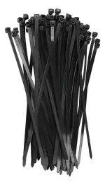 Amarras cable PVC, fabricadas en Poliamida aprobada por UL 6.6, 94 V-2. Resistente a altas y bajas temperaturas. Colores disponible: negro. Resistente a rayos UV. Paquete de 100 unidades